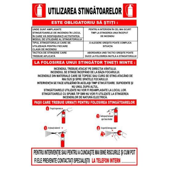 Placuta indicatoare de securitate pentru paza si stingerea incendiilor PSI, utilizarea stingatoarelor, Onsec, 200x300 mm, PVC, 2 mm
