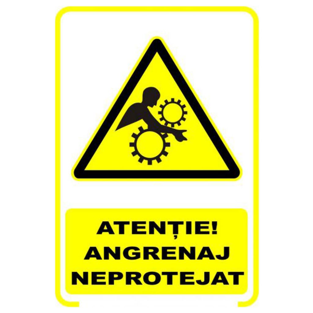 Semne si indicatoare / Placute de avertizare / Placuta indicatoare de securitate si avertizare, atentie, angrenaj neprotejat, Onsec, 200x300 mm, PVC, 2 mm
