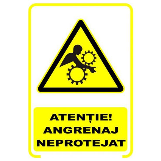 Placuta indicatoare de securitate si avertizare, atentie, angrenaj neprotejat, Onsec, 200x300 mm, PVC, 2 mm
