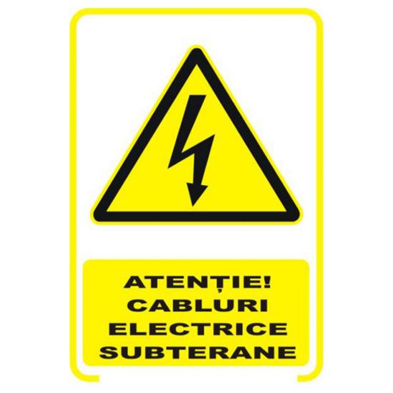 Semne si indicatoare / Placute de avertizare / Placuta indicatoare de securitate si avertizare, atentie, cabluri electrice subterane, Onsec, 200x300 mm, PVC, 2 mm