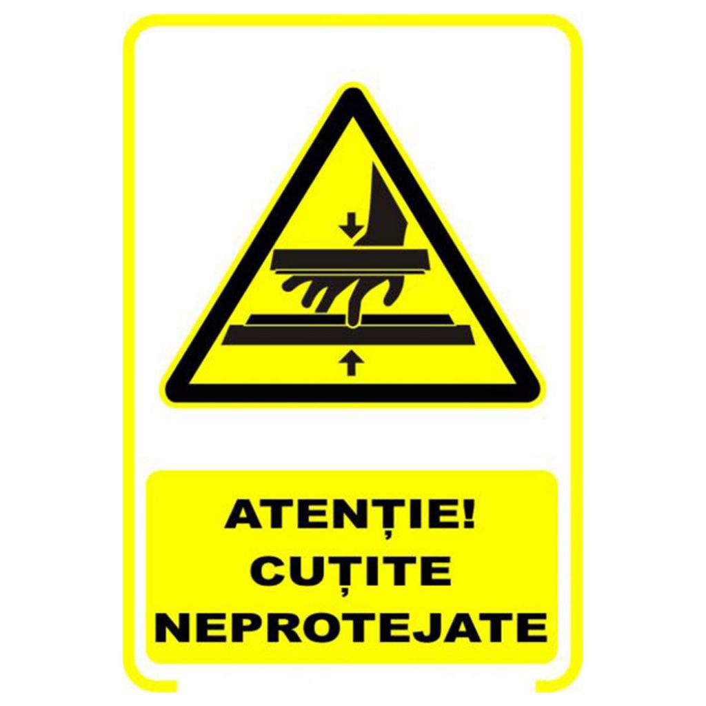 Semne si indicatoare / Placute de avertizare / Placuta indicatoare de securitate si avertizare, atentie, cutite neprotejate, Onsec, 200x300 mm, PVC, 2 mm
