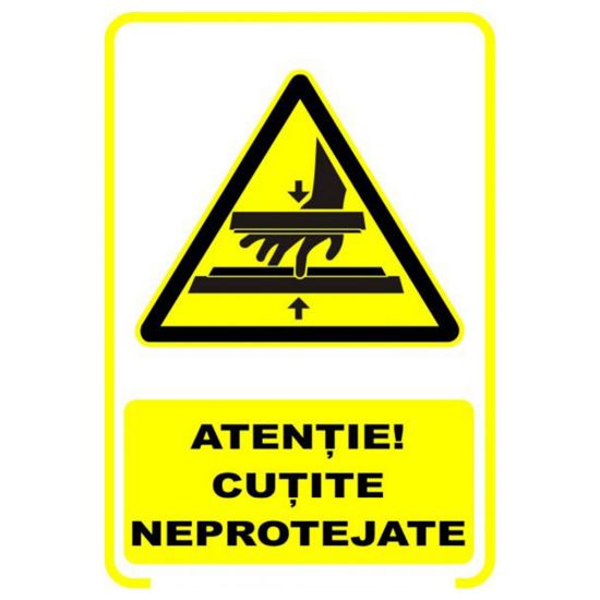 Placuta indicatoare de securitate si avertizare, atentie, cutite neprotejate, Onsec, 200x300 mm, PVC, 2 mm
