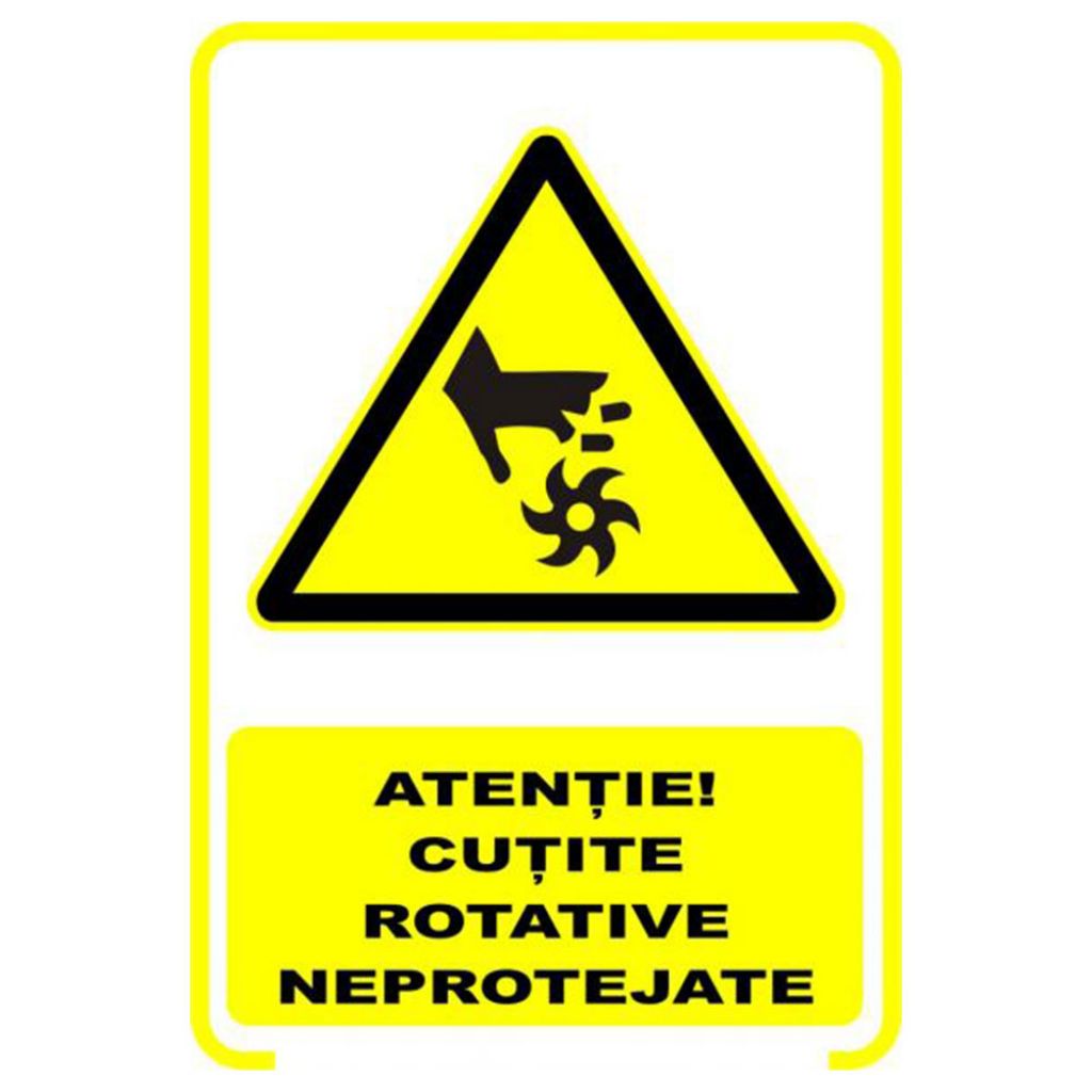 Semne si indicatoare / Placute de avertizare / Placuta indicatoare de securitate si avertizare, atentie, cutite rotative neprotejate, Onsec, 200x300 mm, PVC, 2 mm