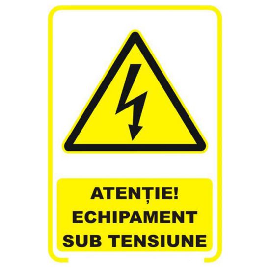 Semne si indicatoare / Placute de avertizare / Placuta indicatoare de securitate si avertizare, atentie, echipament sub tensiune, Onsec, 200x300 mm, PVC, 2 mm