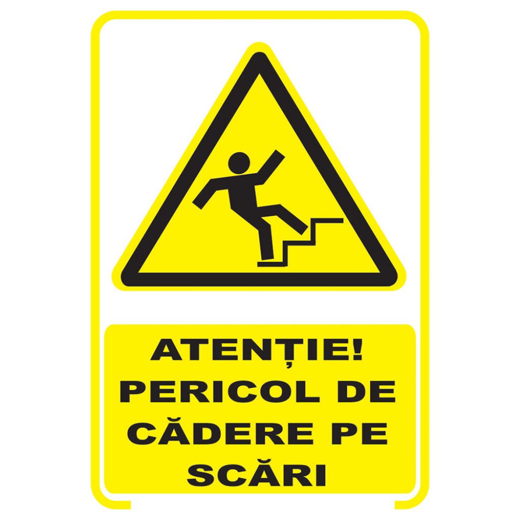 Semne si indicatoare / Placute de avertizare / Placuta indicatoare de securitate si avertizare, atentie, pericol de cadere pe scari, Onsec, 200x300 mm, PVC, 2 mm