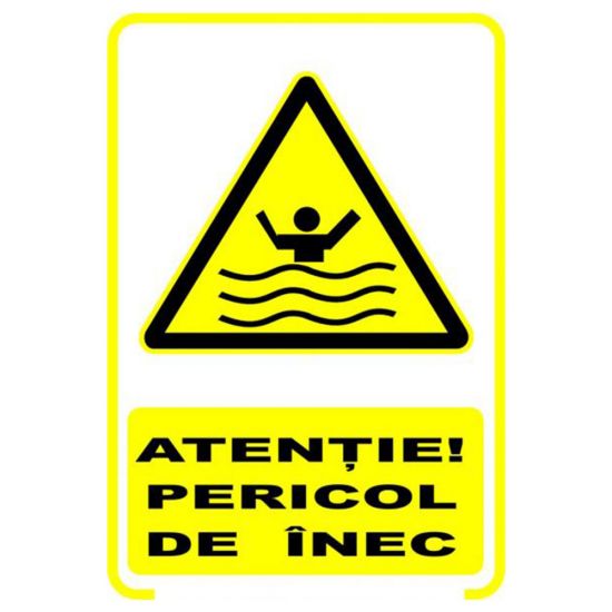 Semne si indicatoare / Placute de avertizare / Placuta indicatoare de securitate si avertizare, atentie, pericol de inec, Onsec, 200x300 mm, PVC, 2 mm