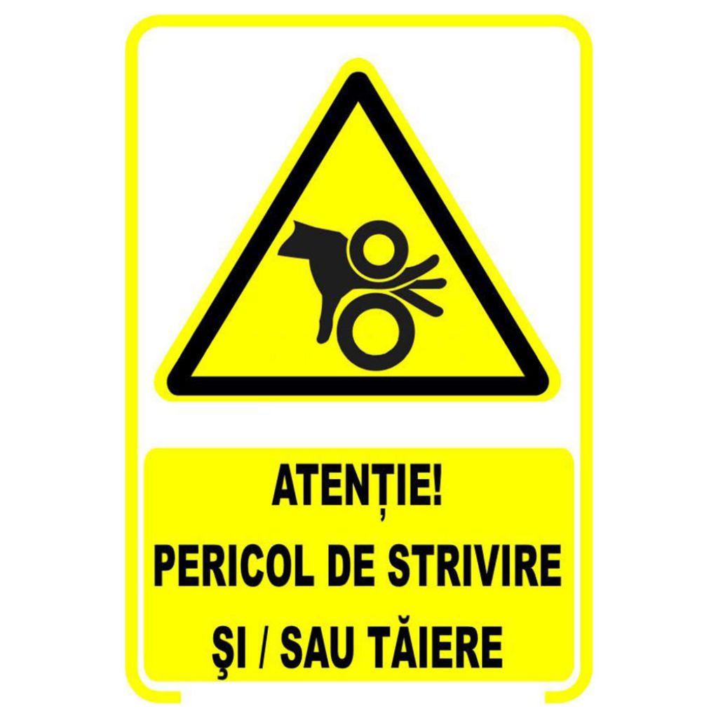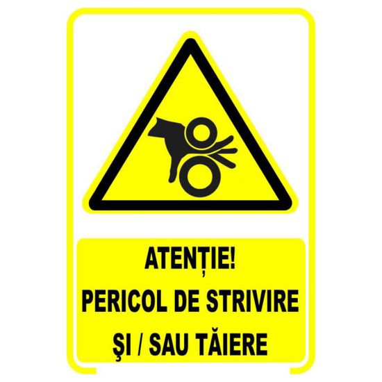 Semne si indicatoare / Placute de avertizare / Placuta indicatoare de securitate si avertizare, atentie, pericol de strivire si / sau taiere, Onsec, 200x300 mm, PVC, 2 mm