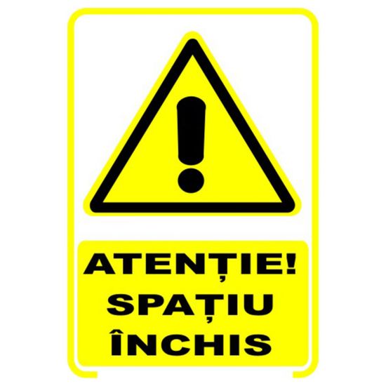Semne si indicatoare / Placute de avertizare / Placuta indicatoare de securitate si avertizare, atentie, spatiu inchis, Onsec, 200x300 mm, PVC, 2 mm
