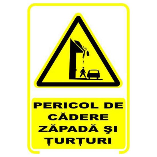 Semne si indicatoare / Placute de avertizare / Placuta indicatoare de securitate si avertizare, atentie, sub tensiune pericol de cadere zapada si turturi, Onsec, 200x300 mm, PVC, 2 mm
