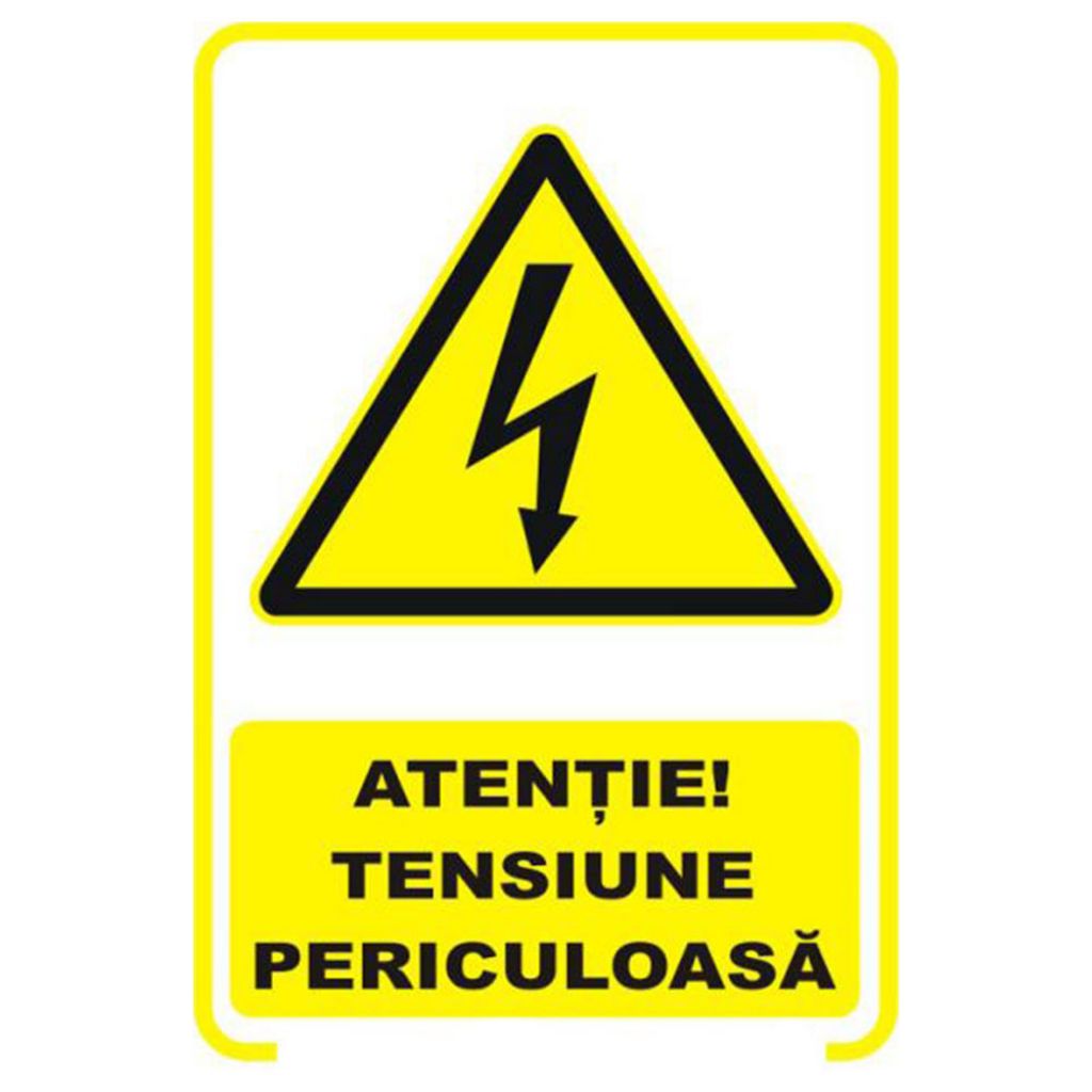 Semne si indicatoare / Placute de avertizare / Placuta indicatoare de securitate si avertizare, atentie, tensiune periculoasa, Onsec, 200x300 mm, PVC, 2 mm