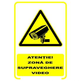 Semne si indicatoare / Placute de avertizare / Placuta indicatoare de securitate si avertizare, atentie, zona de supraveghere video, Onsec, 200x300 mm, PVC, 2 mm