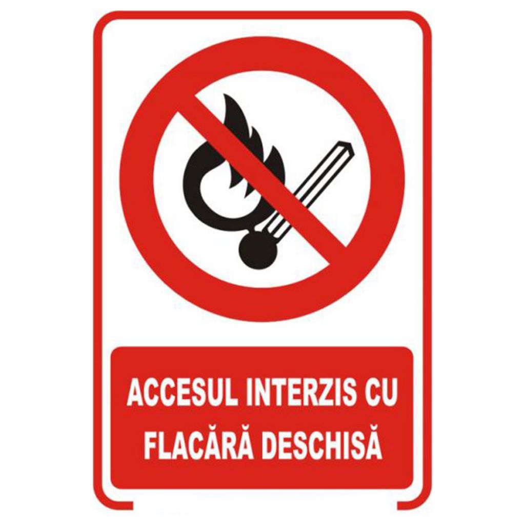 Semne si indicatoare / Placute de interzicere / Placuta indicatoare de securitate si interzicere, accesul interzis cu flacara deschisa, Onsec, 200x300 mm, otel galvanizat, 0.5 mm