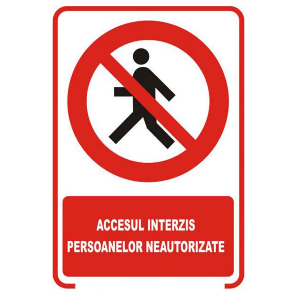 Placuta indicatoare de securitate si interzicere, accesul interzis persoanelor neautorizate, Onsec, 200x300 mm, PVC, 1 mm.