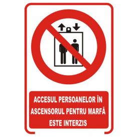 Semne si indicatoare / Placute de interzicere / Placuta indicatoare de securitate si interzicere, accesul persoanelor in ascensorul pentru marfa este interzis, Onsec, 200x300 mm, PVC, 3 mm
