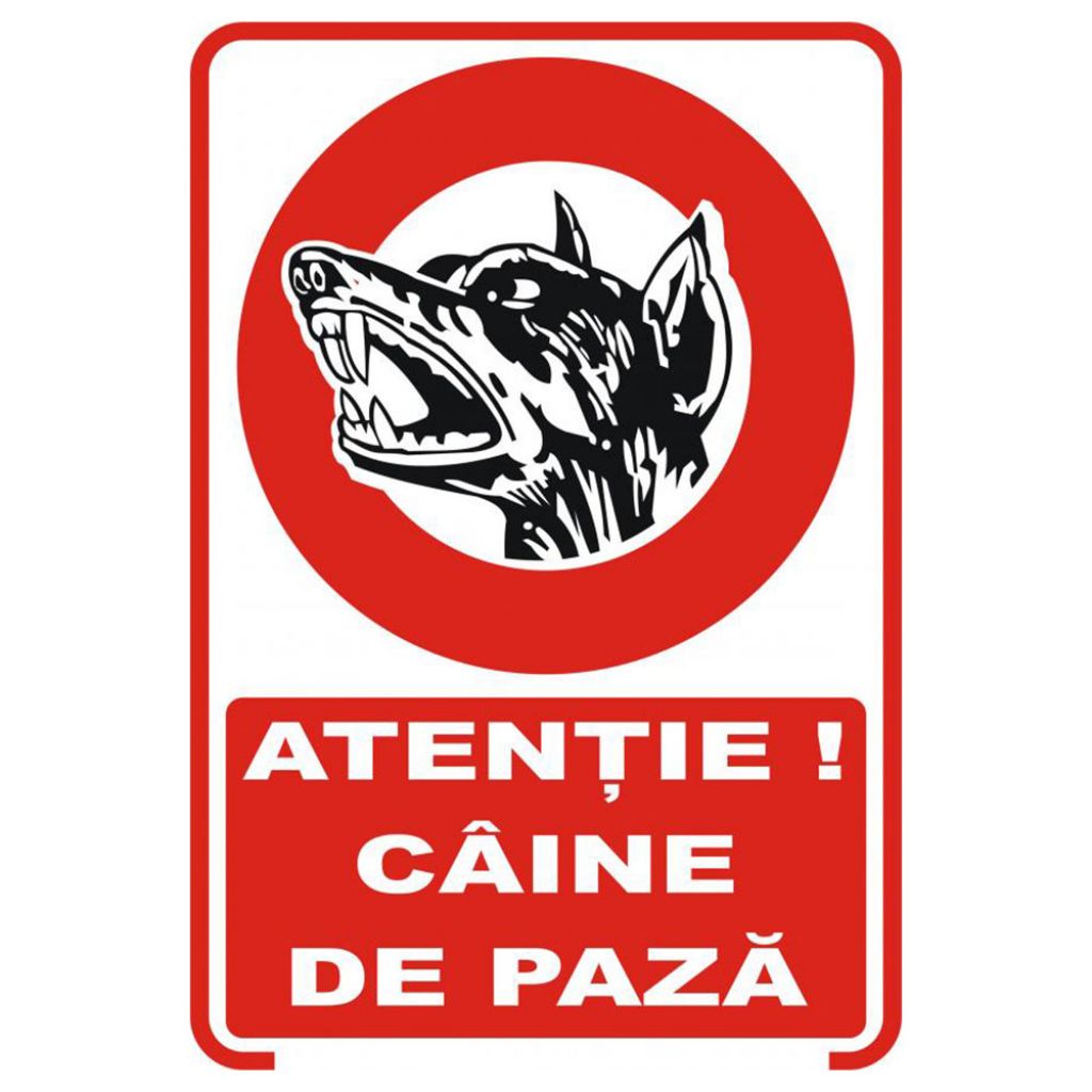 Placuta indicatoare de securitate si interzicere, atentie, caine de paza, Onsec, 200x300 mm, PVC, 1 mm.