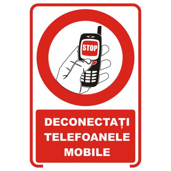 Placuta indicatoare de securitate si interzicere, deconectati telefoanele mobile, Onsec, 200x300 mm, PVC, 1 mm.