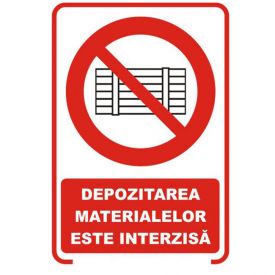 Semne si indicatoare / Placute de interzicere / Placuta indicatoare de securitate si interzicere, depozitarea materialelor este interzisa, Onsec, 200x300 mm, PVC, 2 mm