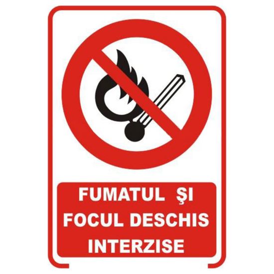 Placuta indicatoare de securitate si interzicere, fumatul si focul deschis interzise, Onsec, 200x300 mm, PVC, 3 mm
