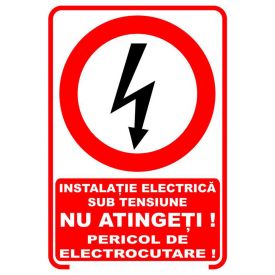Semne si indicatoare / Placute de interzicere / Placuta indicatoare de securitate si interzicere, instalatie electrica sub tensiune, nu atingeti, pericol de electrocutare, Onsec, 200x300 mm, PVC, 1 mm