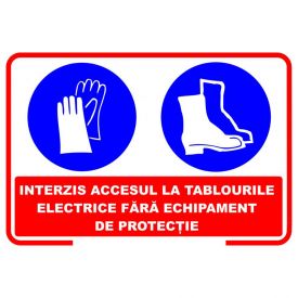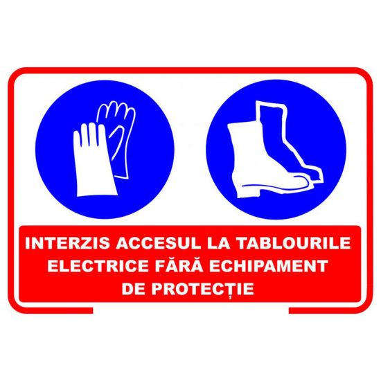 Placuta indicatoare de securitate si interzicere, interzis accesul la tablourile electrice fara echipament de protectie, Onsec, 200x300 mm, PVC, 3 mm