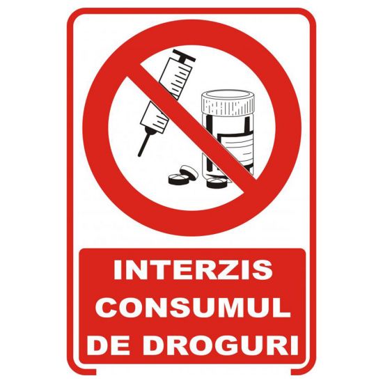 Placuta indicatoare de securitate si interzicere, interzis consumul de droguri, Onsec, 200x300 mm, PVC, 3 mm
