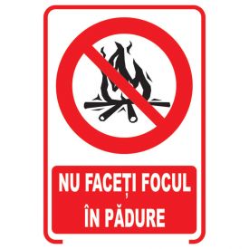 Placuta indicatoare de securitate si interzicere, nu faceti focul in padure, Onsec, 200x300 mm, PVC, 1 mm.