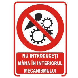 Placuta indicatoare de securitate si interzicere, nu introduceti mana in interiorul mecanismului, Onsec, 200x300 mm, PVC, 1 mm.