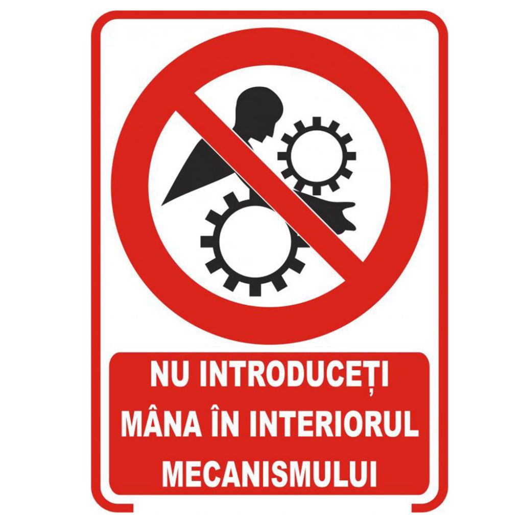Placuta indicatoare de securitate si interzicere, nu introduceti mana in interiorul mecanismului, Onsec, 200x300 mm, PVC, 3 mm