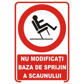 Placuta indicatoare de securitate si interzicere, nu modificati baza de sprijin a scaunului, Onsec, 200x300 mm, PVC, 1 mm.