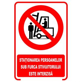 Placuta indicatoare de securitate si interzicere, stationarea persoanelor sub furca stivuitorului este interzisa, Onsec, 200x300 mm, PVC, 3 mm
