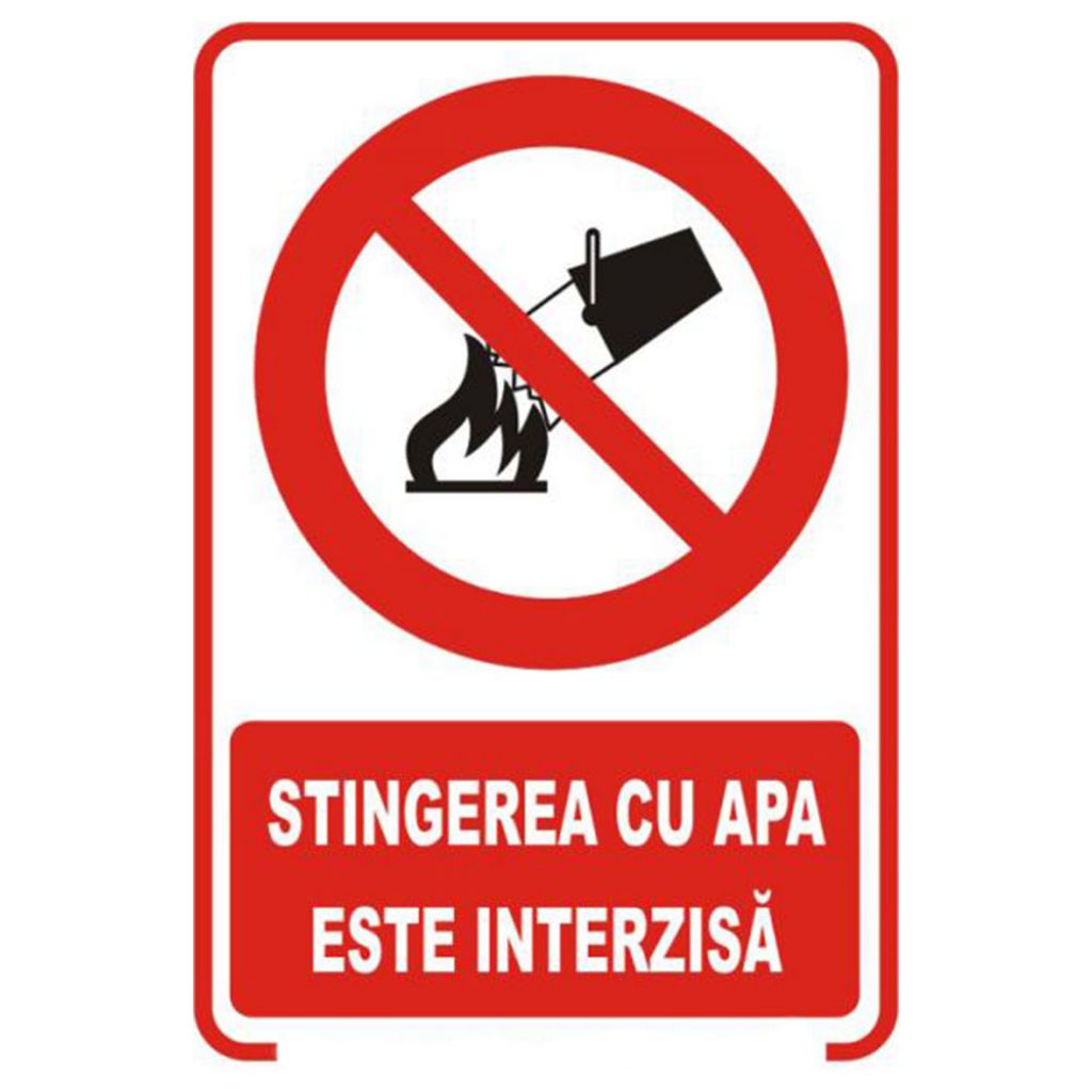 Placuta indicatoare de securitate si interzicere, stingerea cu apa este interzisa, Onsec, 200x300 mm, PVC, 1 mm.