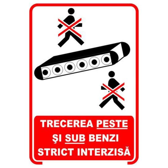 Placuta indicatoare de securitate si interzicere, trecerea peste si sub benzi strict interzisa, Onsec, 200x300 mm, PVC, 1 mm.