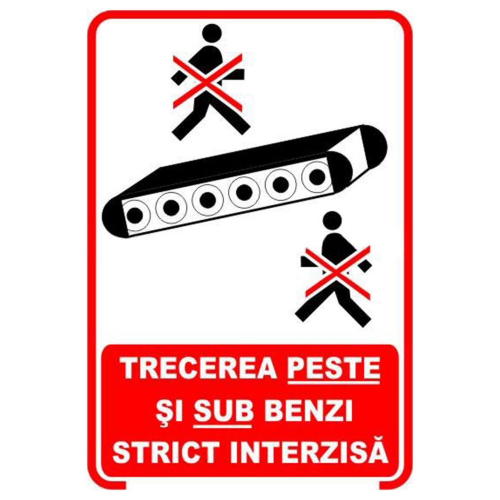 Placuta indicatoare de securitate si interzicere, trecerea peste si sub benzi strict interzisa, Onsec, 200x300 mm, PVC, 3 mm