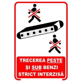 Semne si indicatoare / Placute de interzicere / Placuta indicatoare de securitate si interzicere, trecerea peste si sub benzi strict interzisa, Onsec, 200x300 mm, PVC, 3 mm