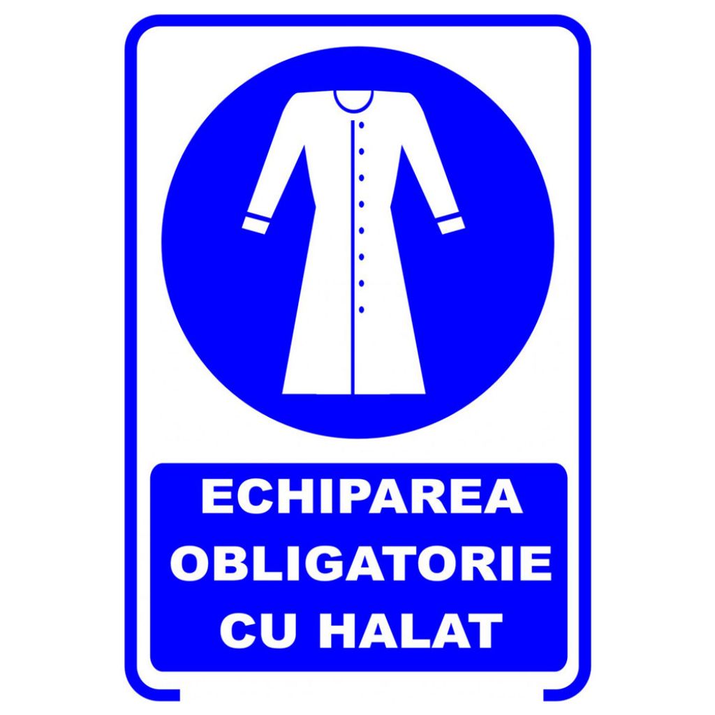 Placuta indicatoare de securitate si obligativitate, echiparea obligatorie cu halat, Onsec, 200x300 mm, PVC, 2 mm