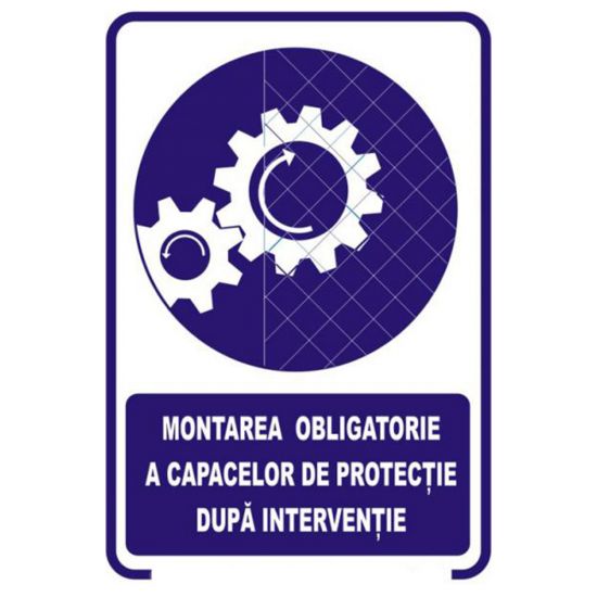Placuta indicatoare de securitate si obligativitate, montarea obligatorie a capacelor de protectie dupa interventie, Onsec, 200x300 mm, PVC, 2 mm