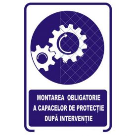 Semne si indicatoare / Placute de obligativitate / Placuta indicatoare de securitate si obligativitate, montarea obligatorie a capacelor de protectie dupa interventie, Onsec, 200x300 mm, PVC, 2 mm