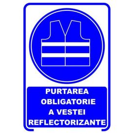 Semne si indicatoare / Placute de obligativitate / Placuta indicatoare de securitate si obligativitate, purtarea obligatorie a vestei reflectorizante, Onsec, 200x300 mm, PVC, 2 mm