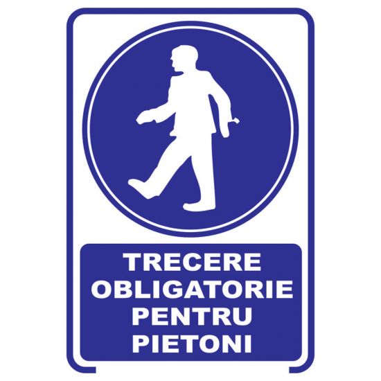 Semne si indicatoare / Placute de obligativitate / Placuta indicatoare de securitate si obligativitate, trecere obligatorie pentru pietoni, Onsec, 200x300 mm, PVC, 2 mm