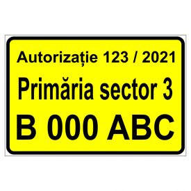 Placuta indicatoare parcare, autorizatia nr., primaria, numar auto, Onsec, 300x400 mm, PVC, 1 mm.