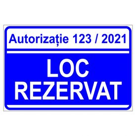 Placuta indicatoare parcare, autorizatia numar, loc rezervat, Onsec, 200x300 mm, PVC, 2 mm.