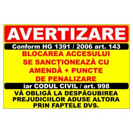 Placuta indicatoare parcare, avertizare, blocarea accesului se sanctioneaza cu amenda si puncte de penalizare, Onsec, 200x300 mm, PVC, 3 mm.