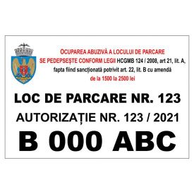 Placuta indicatoare parcare, loc de parcare nr., autorizatia nr., numar auto, Onsec, 200x300 mm, PVC, 1 mm.