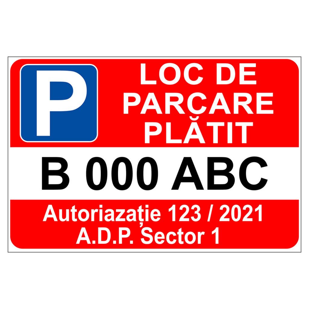 Placuta indicatoare parcare, loc de parcare platit, numar auto, Onsec, 200x300 mm, aluminiu compozit, 2 mm.