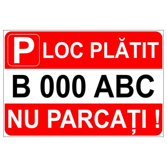 Placuta indicatoare parcare, loc platit, nu parcati, Onsec, 300x400 mm, PVC, 3 mm.