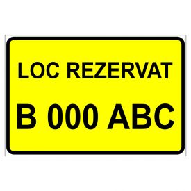 Placuta indicatoare parcare, loc rezervat, numar auto, Onsec, 300x400 mm, autocolant vinyl, 0.07 mm.
