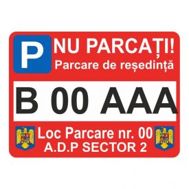 Placuta indicatoare parcare, nu parcati, parcare de resedinta, numar auto, Onsec, 300x400 mm, aluminiu compozit, 2 mm.