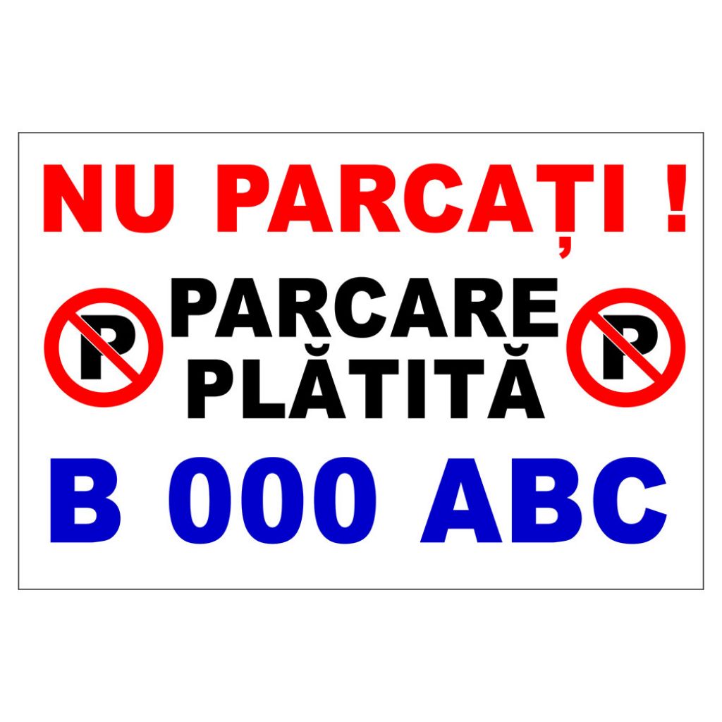 Placuta indicatoare parcare, nu parcati, parcare platita, Onsec, 300x400 mm, autocolant vinyl, 0.07 mm.