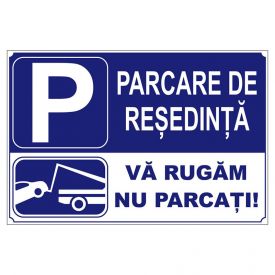 Placuta indicatoare parcare, parcare de resedinta, va rugam nu parcati, Onsec, 300x400 mm, PVC, 2 mm.