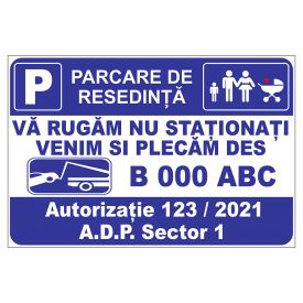 Placuta indicatoare parcare, parcare de resedinta, va rugam nu stationati, venim si plecam des, Onsec, 200x300 mm, aluminiu compozit, 2 mm.